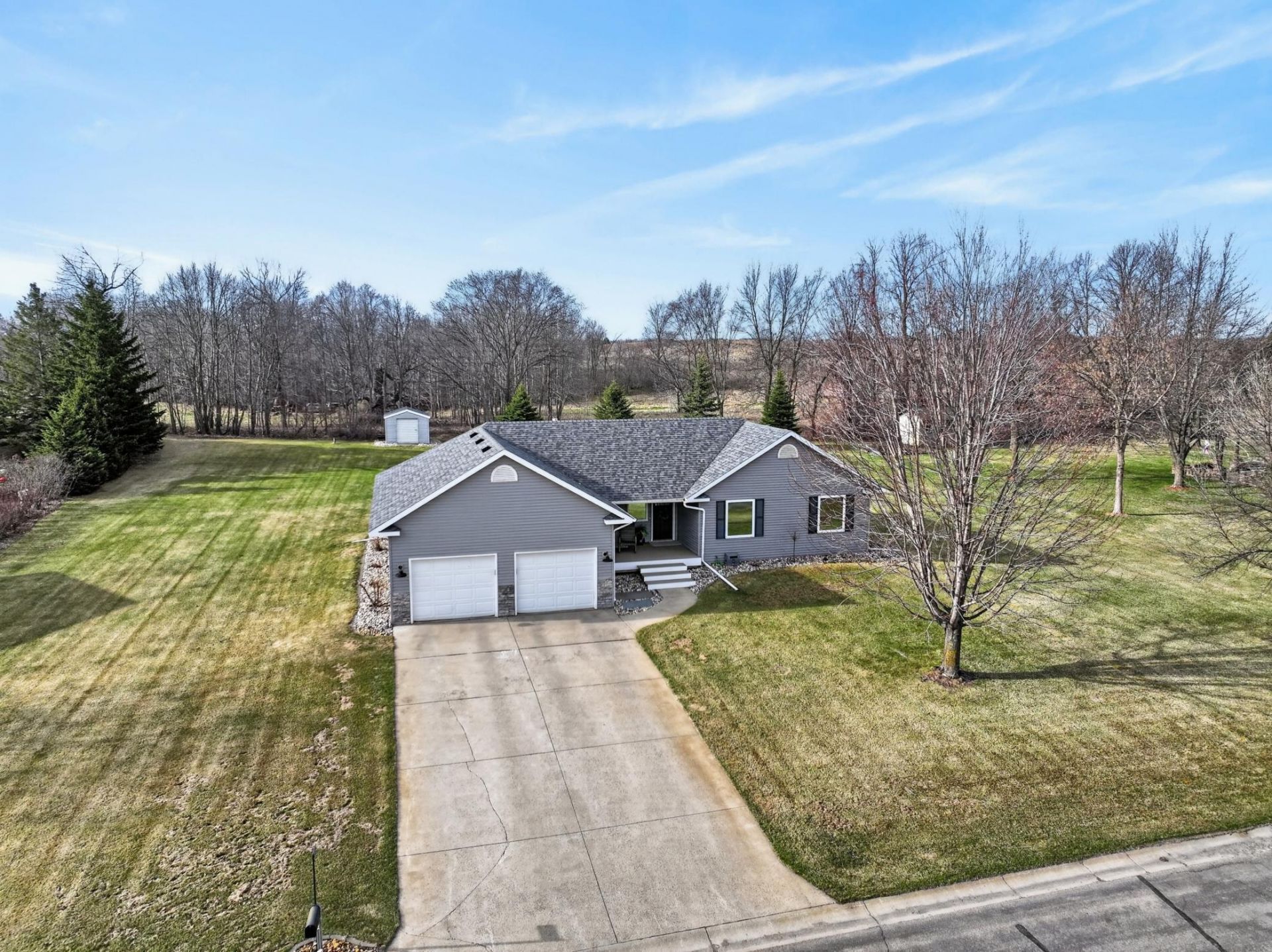 Welcome home to this warm and welcoming 4-bedroom, 3-bath rambler in a sought-after location close to lakes, downtown & schools! With 3 bedrooms on the main level, it's designed for togetherness while still offering room for everyone to have their own space.The open-concept main level is the heart of the home?ideal for busy mornings, family dinners, and gathering with friends. You'll love the newer engineered hardwood floors, cozy gas fireplace for movie nights, and the bright kitchen with white cabinets, granite countertops, and newer stainless-steel appliances?perfect for everything from pancakes on Sunday to after-school snacks.Downstairs, the spacious family room is ready for game nights & and movie marathons, while the flexible bonus room can easily become a playroom, homework zone, home office, or workout space?whatever your family needs most.Enjoy peace of mind knowing the big updates are already done, including newer shingles, furnace, A/C, and water softener.Step outside and discover your own backyard retreat on a beautifully landscaped .70-acre lot?plenty of room for kids, pets, gardens, and summer fun. The paver patio is perfect for BBQs and evening hangouts, while the brand-new front deck offers a welcoming spot for morning coffee.Close to lakes, full of updates, and filled with spaces to gather and grow?this is more than a house, it's a place to truly feel at home.